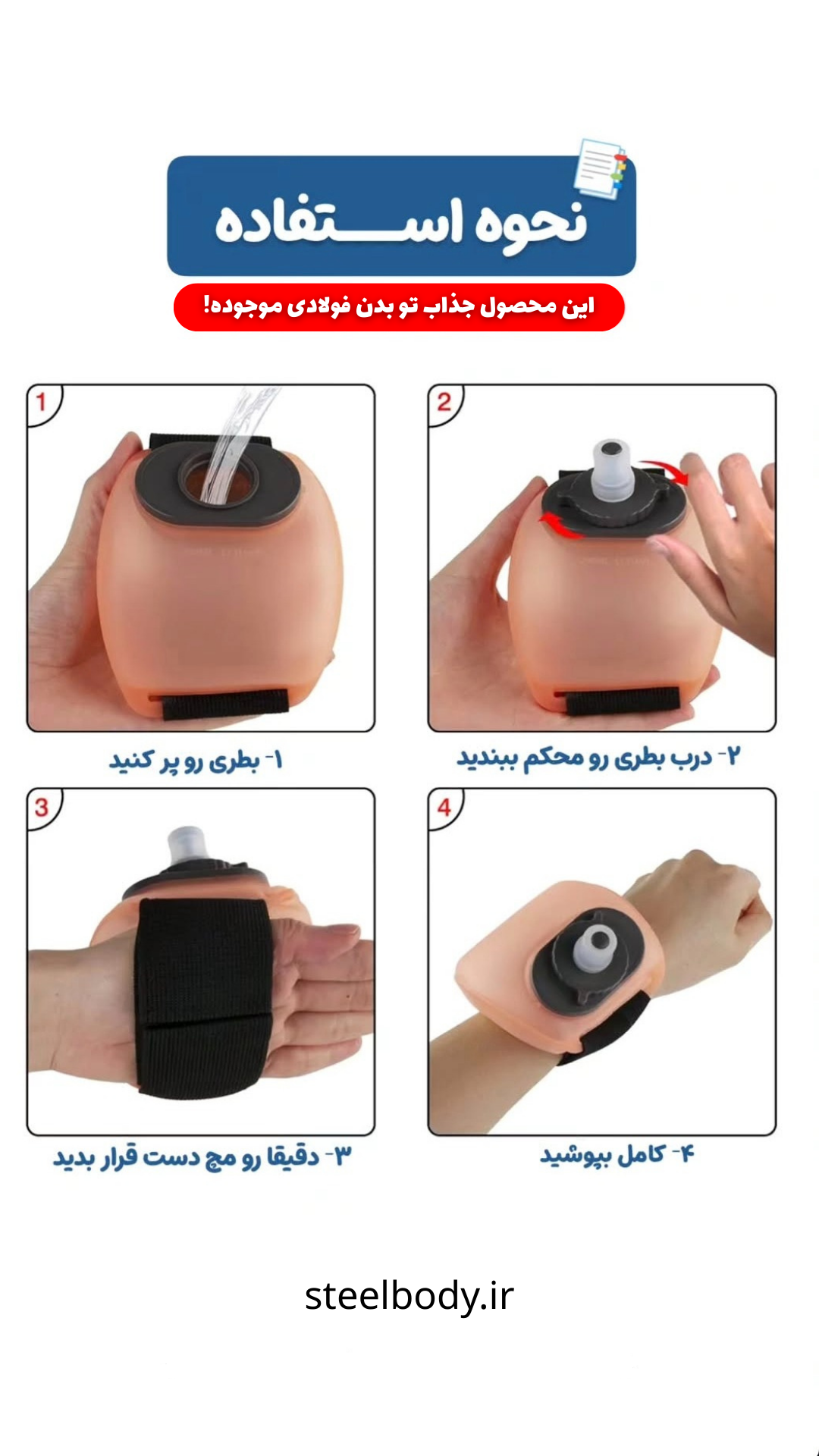 قمقمه مچی ورزشی طوری طراحی شده است که مثل یک دستبند روی مچ دست بسته میشود و بدون نیاز به نگه داشتن بطری، همیشه در دسترس شماست.